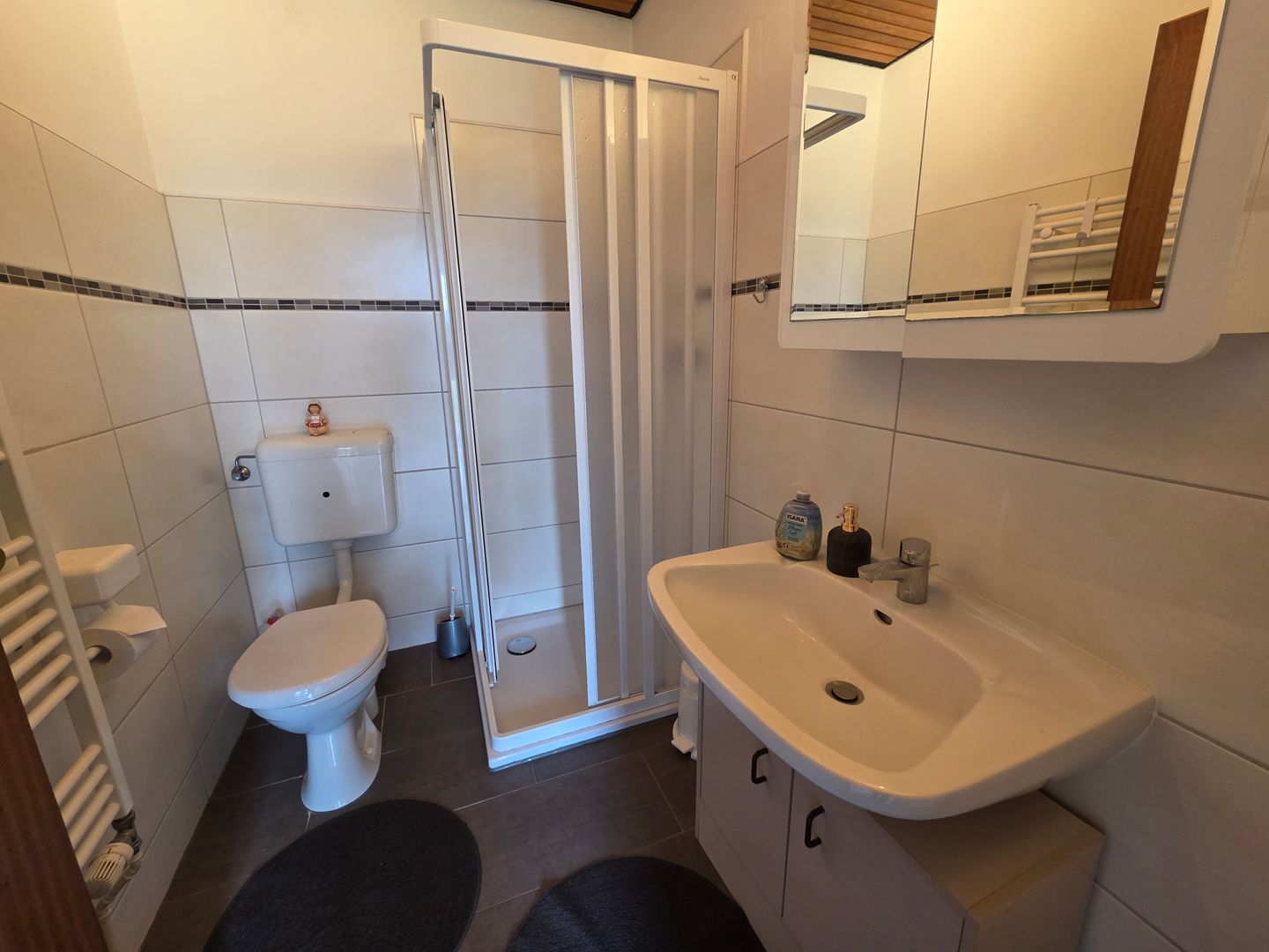 Diese Wohnung ist wie folgt aufgeteilt: WOHNBEREICH (ein Sofa, ein Sessel, ein Couchtisch, ein Esstisch mit zwei Stühlen, Sat-TV, Radio, kostenloses Internet, Bücher), Süd-West-Terrasse, vollausgestattete, moderne KÜCHENZEILE (u.a. Geschirrspüler, Mikrowelle, 2-Platten-Ceranfeld, Kühlschrank mit Gefrierfach, Kaffeemaschine, Toaster, Eierkocher, Besteck und Töpfe), SCHLAFZIMMER mit einem Doppelbett (180 x 200 cm) und einem Kleiderschrank, BADEZIMMER mit Dusche, WC, Handtuchwärmer, Waschbecken, Spiegelschrank und Föhn, sowie FLUR mit einer kleinen Garderobe. Zur Wohnung gehört ein Parkplatz am Haus. Ihre Fahrräder können Sie im Garten direkt vor der Wohnungstür abstellen. Haustiere und das Rauchen in der Wohnung sind nicht erlaubt.